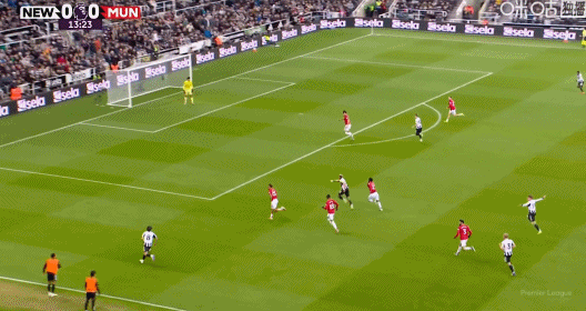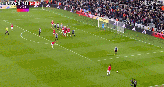 第45+5分钟,B费送点,安东尼-戈登操刀命中,十人纽卡1-0!