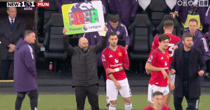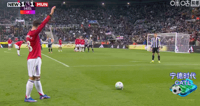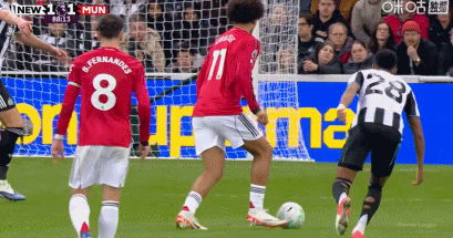 第45+9分钟,B费定位球助攻,卡塞米罗抢点头槌破门,曼联1-1!
