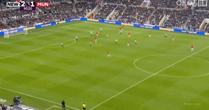 第90分钟,奥苏拉内切兜射破门,十人纽卡2-1!
